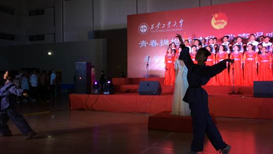 本次比赛总共有13个学院参加,4556银河国际代表队第七个登台表演,首先演唱的必选曲目《光荣啊,中国共青团》,紧接着带来自选曲目《在灿烂阳光下》。女生一袭红裙、男生白衬黑裤在灯光下璀璨养眼,优美动听的旋律、演唱者饱满的激情、舞者婀娜的姿态、以及老爷爷扮演者的友情出演,展现出我院风采。此次比赛中4556银河国际荣获三等奖。