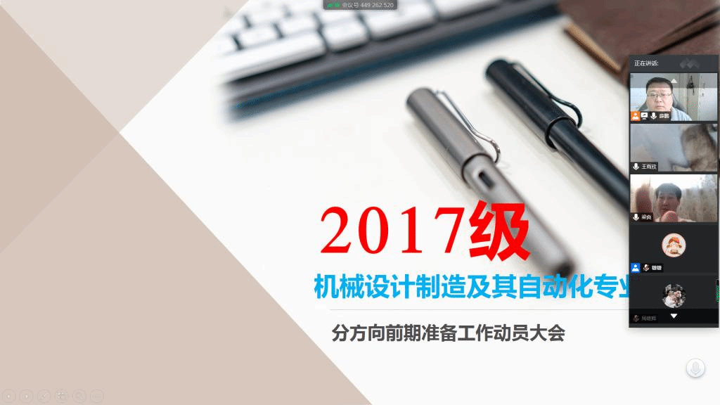 2020年5月22日,4556银河国际2017级通过腾讯会议系统召集机械设计制造及其自动化专业班长团支书召开关于机制专业分方向前期准备工作动员大会。本次会议由本级辅导员薛鹏主持,全体班长团支书参加。