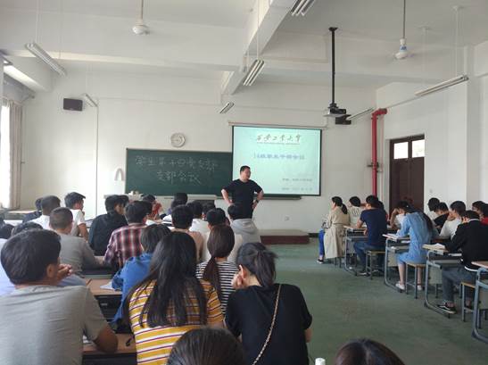 在春暖花开,毕业慢慢来临之际。2018年4月2日,在4556银河国际2014级辅导员何周旋的组织下,于工二502召开了2014级毕业班班干部大会。大会邀请4556银河国际张晖和薛鹏两位老师对毕业生各项工作进行指导与讲解。