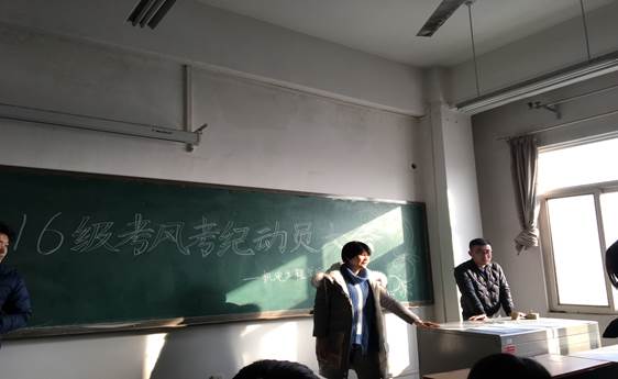 大会初始,由两位主持人宣布大会目的,两位教师也直入主题,首先对即将到来的期末考试相关事项提出要求。老师要求,2016级的班委们要做好领头作用,全身心投入期末复习备考中,做好班级学习氛围及思想工作。对考试作弊、替考、携带手机或其他电子设备进入考场等行为,学校将严惩不贷,班委有义务负责对相关注意事项给予宣传。其次,大会进入第二项,对剩余在校时间的纪律安全做以规范与强调。18周过后2016级基本进入无课阶段,但仍属于教学时间内,学生要严格要求自我,不可放松自我约束,学校的制度规定依旧要牢记,例如,坚决执行请假制度,不能擅自离校等。此外,对即将到来的圣诞节和元旦,全体学生在享受节日欢快的同时,也要注意安全,时刻保护自己,在此期间,有任何突发状况,都应即使联系辅导员,各班做好假期去向统计。最后,两位老师强调,我院的要求:作弊是红线,安全是底线。无论何时我们2016级学生都应该认真执行这一要求。