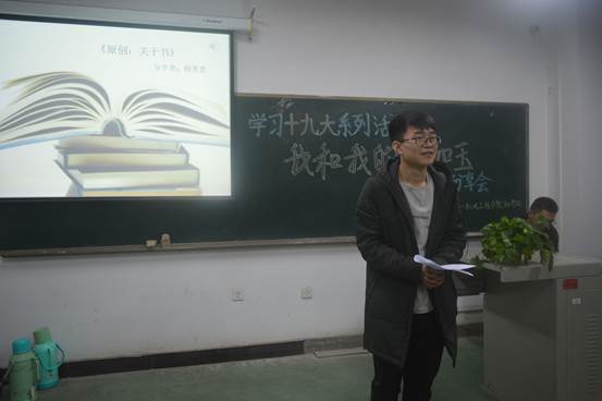 2017年12月17日下午4点,由我院团学青科秘书处举办的学习十九大系列活动之《习近平的七年知青岁月》读书分享会,在工二-401圆满举办。出席本次活动的嘉宾有电子信息工程学院老师朱楠,我院学生会秘书长彭松松,学生会副主席戴亚澳等。