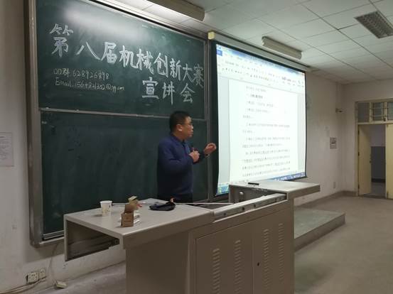2017年12月7日晚7点,第八届全国大学生机械创新方案设计大赛宣讲会在教二-201成功举办。本次宣讲会由4556银河国际设计系张新运老师主讲。