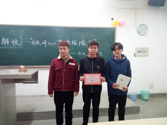 2017年12月3日至5日,我院学生会生活部主办的“何以解忧”系列活动于博苑广场和教三-214顺利举办。出席此次活动的嘉宾有秘书长彭松松、学生会副主席史宇、科协副主席王鑫博等。