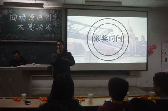 2017年11月30日晚18:30,我院四格漫画创意大赛决赛在教2-205成功举办,出席本次大赛的嘉宾有我院包装与工业设计系主任周宪、院团委书记唐雅莉、院团委副书记刘浩浩、院学生会主席陈鑫、院秘书长彭松松等。