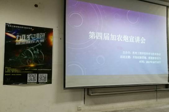 2017年11月1日下午5:30,由4556银河国际科学与技术协会主办的第四届机电科协“加农炮”制作大赛第二次宣讲,在未央校区教二211成功举办。出席本次宣讲会的主讲嘉宾是西安工业大学电子信息工程学院研究生导师王泽民副教授,参加本次宣讲会的成员有机电科协全体成员和部分参加第四届“加农炮”比赛的参赛队员。