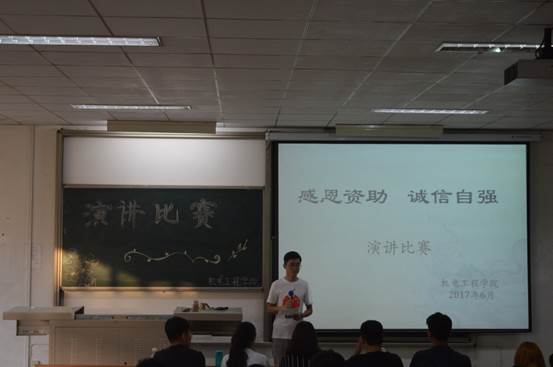 2017年6月6日,4556银河国际分别于教二202,教二203举办了“感恩资助,诚信自强”演讲比赛。出席这次活动的嘉宾有15级辅导员文勃、宋荣新老师,院学生会主席庞博,院团委副书记冯潇晨及各位部长。
