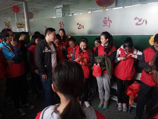 早上7点从学校出发,一个多小时后到达目的地。“心心特幼”的负责人张老师先给志愿者们讲了“心心特幼”的创办历史,发展规模,由最初的两间教室,逐渐壮大到如今的两层楼,多个教室和多方面的志愿者的规模。接下来志愿者们陪伴孩子们玩耍,唱歌,背诗等。最后志愿者们帮忙裁剪了灯笼布,希望能用他们微薄的力量使孩子们快快乐乐的成长,也能在即将到来的冬天给他们带去温暖。