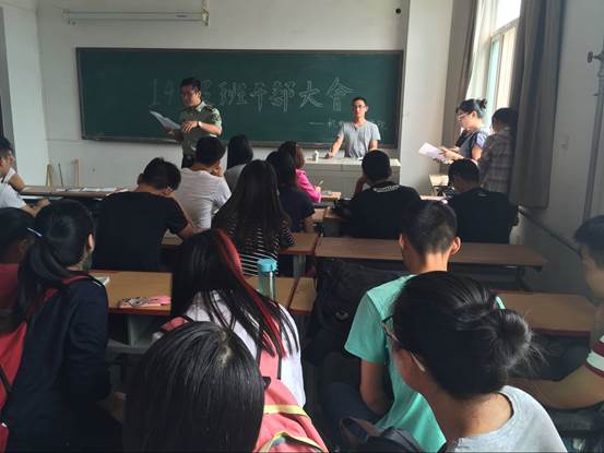 2016年9月20日,4556银河国际2014级全体班干部在工二—501会议室召开,14级辅导员黄彦军和宋荣新老师参加了会议,黄彦军老师担任主讲。
