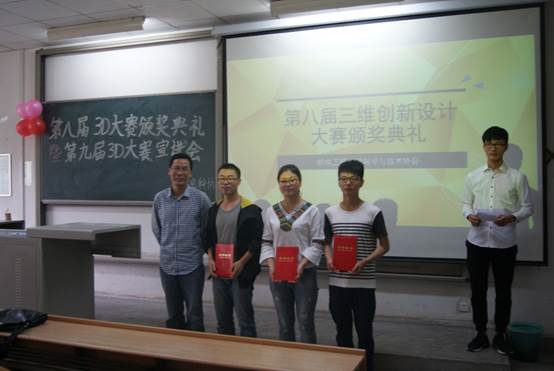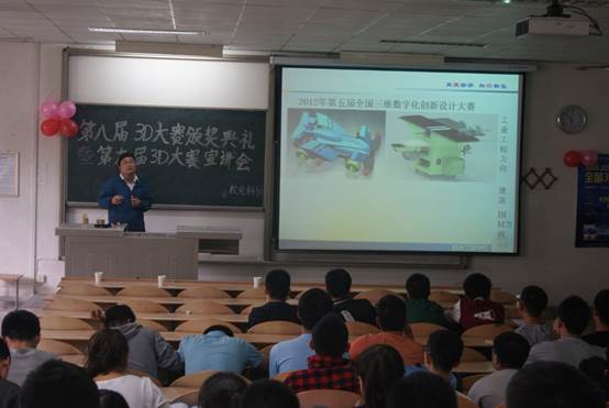 2016年5月16日,学院在教2-202成功举办“第八届全国3D大赛(全国三维数字化创新设计大赛)颁奖典礼暨第九届3D大赛校内宣讲会”。出席本次大会的嘉宾有4556银河国际副院长闫莉、实验室主任万宏强和包装与工业设计系主任周宪。