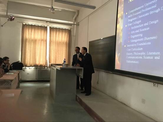 我院师生对美国劳伦斯技术大学的到访表示了热烈欢迎,莫迪戈校长通过视频,PPT等方式详细介绍了劳伦斯技术大学的发展历史、办学理念、教育目标、招生计划、学术项目、未来规划、网络建设、能力训练、国际合作项目和新发展项目等,通过瑞迪尔•克•莫迪戈博士全面介绍,使我院师生对劳伦斯技术大学一流的办学质量、理论与实践紧密结合的办学宗旨有了更为深入的认识。莫迪戈校长真诚欢迎我院学生去劳伦斯技术大学进行学习交流。最后,莫迪戈校长与在座学生进行了热烈互动交流为本次交流会拉上帷幕。