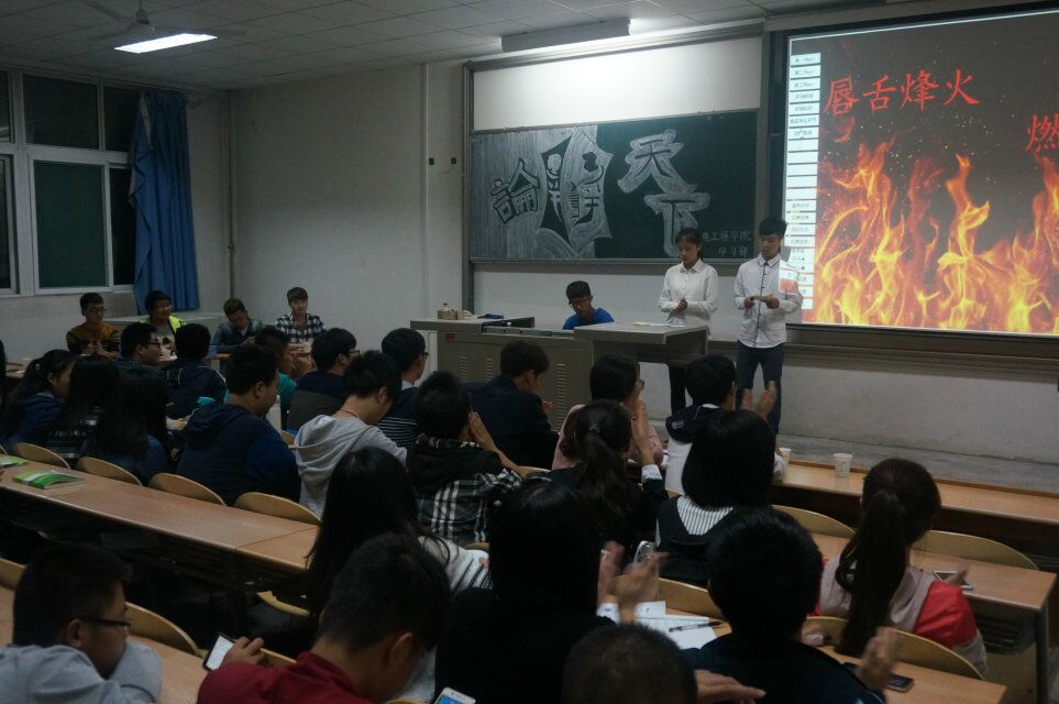 2015年10月22日晚上18:40,由4556银河国际学习部主办的“唇舌烽火,燃在金秋”辩论赛总决赛于教1-301教室正式拉开帷幕。学生会主席及各部部长们担任了此次决赛的评委。
