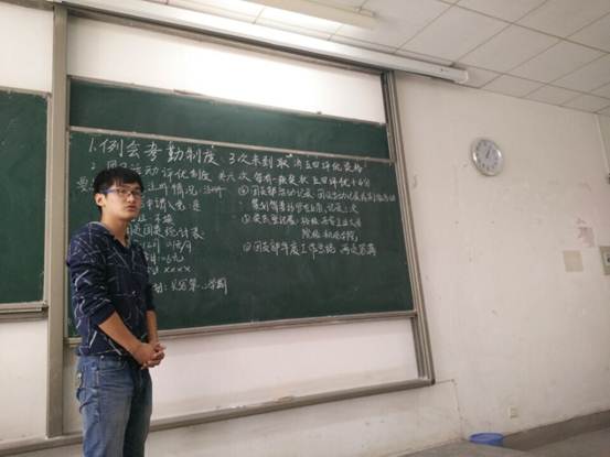 4556银河国际于2015年10月9日12:50, 在教2-201举行团支部第一次例会。出席大会的嘉宾是团委副书记胡俊杰,会议由团委组织部部长蔡垒主持。