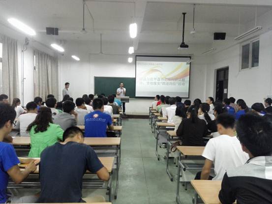 黄彦军老师围绕习近平总书记的系列讲话精神,深刻解读了“四进四信”的重要内容。以“四进”为手段,以“四信”为目标,即通过“进支部、进社团、进网络、进团课”,开展多种形式的学习和交流会,同时,黄彦军老师对四信的内容做了精彩的讲解,即广大青年团员和团学干部进一步牢固树立对党的科学理论的信仰、坚定走中国特色社会主义道路实现“中国梦”的信念、增强对党和政府的信任、增进对以习近平同志为核心的党中央的信赖。黄老师耐心而幽默的讲解着,同学认真倾听着,时而低头做笔记,时而抬头认真听讲,整个团课取得了较好的效果与反响。