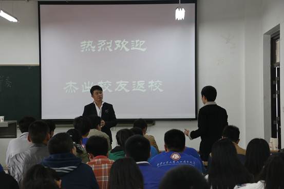 2015年4月19日下午,为庆祝我校60华诞,4556银河国际校友报告会在工2—504正式拉开帷幕,我院特邀89级机电学院校友湖南省耘州投资有限公司董事长刘湘飞做报告。本次报告会由4556银河国际党委副书记闫莉教授主持。