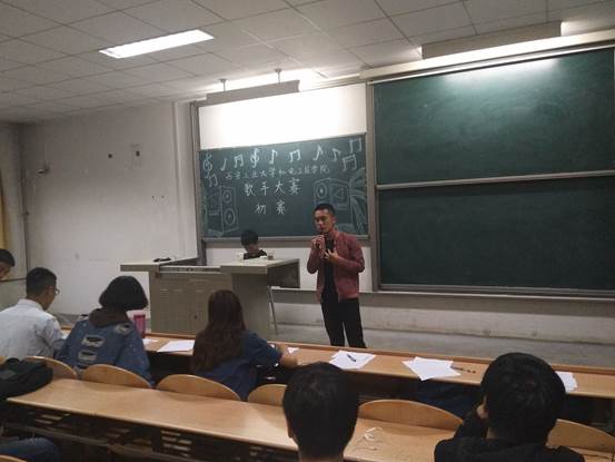 2018年4月10日18:30,4556银河国际校园歌手大赛初赛于教二206顺利举行。出席本次活动的嘉宾有上届校园歌手大赛冠军乔翼泽,大学生艺术团声乐部副部长左玉笛,我院学生会主席陈鑫,我院学生会副主席戴亚澳等。