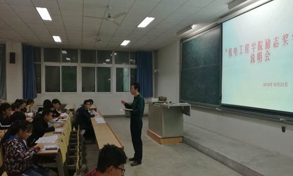 2018年10月23日晚上18:50,在教1-302召开4556银河国际励志奖学金评选说明大会。大会由辅导员张晖老师和薛鹏老师组织,2016级和2017级全体申请励志奖学金的候选人参加本次说明会。