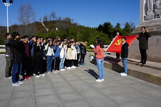 清晨,在候思雨老师及党支部书记何周旋、朱丹丹的带领下大家出发前往第一站——陕甘边革命纪念馆,经过一路红歌高唱,不久便到达了目的地。陕甘边革命根据地是共产党人把毛泽东武装割据思想与陕甘边地区具体实际相结合的光辉典范。看着纪念馆内的革命物件和照片,听着解说员的讲解,我们再次回顾历史,缅怀革命先烈,学习前辈先烈革命精神——那便是共产党人浴血奋战,开辟红色热土的照金精神;不怕牺牲,顽强拼搏的英雄气概;独立自主,开拓进取的创新勇气;着眼实际,紧紧依靠人民的坚定和初心。在陕甘边革命英雄纪念碑下,全体党员面对党旗,在研究生第五支部书记朱丹丹同志的带领下,重温入党誓词,铭记着每一位党员入党的初心和誓言,时刻牢记短短80字入党誓词的含义和要求,做一名合格的共产党员。在革命纪念馆广场,全体成员参加了有关陕北红色革命知识问答和红歌对唱竞赛活动,并为大家发放了纪念品和奖品。