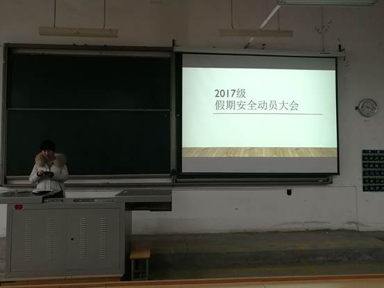 2019年1月10日10时,4556银河国际2017级假期安全暨考风考纪动员大会在教1-205/217召开,2017级辅导员薛鹏、唐雅莉老师主持了本次动员大会。