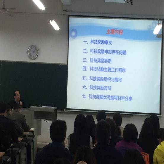 会上,李高宏就科研成果申报方法与技巧以及常见问题解决方法从科技奖励意义、申报存在问题、类别、主要工作程序、组织与撰写、答辩等几方面对与会教师做了耐心、细致、详细地讲解,参会教师就各自关心的事项进行了充分地沟通与交流。