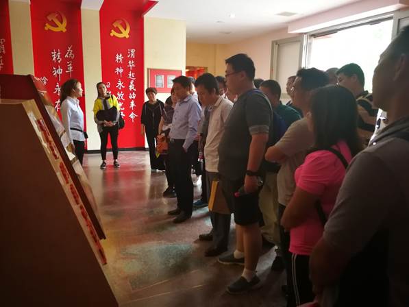在渭华起义纪念馆,党员同志们先后参观了渭华起义陈列大厅、渭华起义旧址、西北工农革命军司令部旧址、西北工农革命军军委扩大会议旧址、烈士殉难井,瞻仰了渭华起义烈士纪念塔,深入学习了1928年2月,中国共产党领导渭南华州地区的广大农民举行中国西北地区最早、规模最大、影响最深的一次反抗国民党反动统治的武装暴动——渭华起义的革命历史。一件件大刀、长矛,一张张泛黄而不失鲜活的英烈照片,一幅幅战争路线图,向大家讲述着一个又一个可歌可泣、英勇悲壮、感人肺腑的英雄故事。教师党员们认真听着讲解,亲身感受了三百多名渭华儿女用自己年轻的生命和淋淋的鲜血谱写的一曲英雄壮歌,学习了刘志丹、唐澍、王泰吉等革命先烈们坚定理想信念、敢于奉献牺牲的革命精神,为革命先烈们头可断、血可流、志不可辱的英雄气概深深感动。