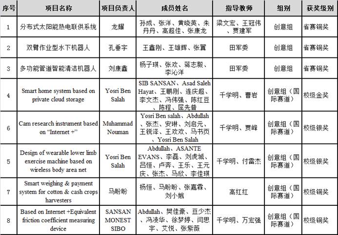 附:第五届中国“互联网+”大学生创新创业大赛机电学院获奖项目清单