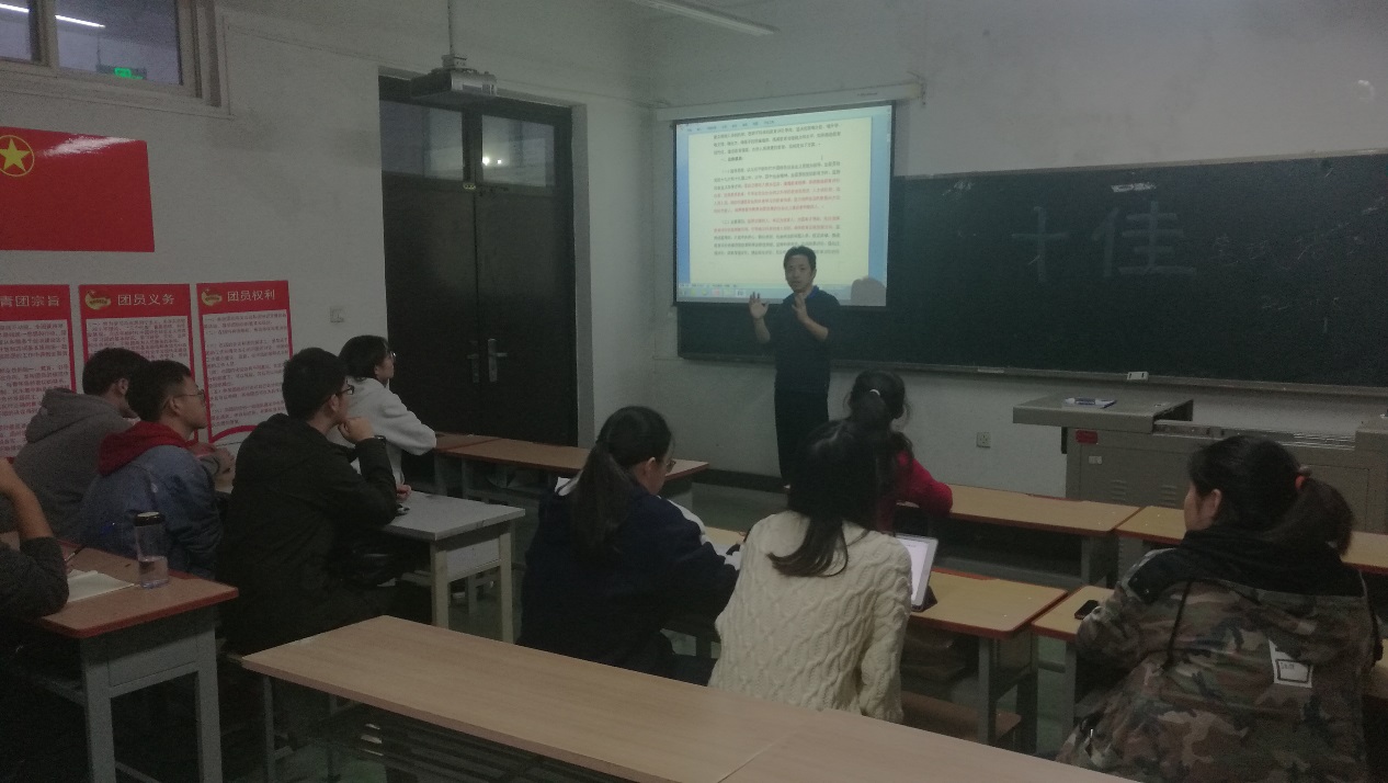 4556银河国际为培优推优,于2020年11月5日下午在工二401对我院入围2019-2020学年十佳大学生笔试阶段的学生进行集中笔试前培训,由2017级辅导员薛鹏老师主持,张晖老师主讲,并邀请2018-2019学年十佳大学生获奖人阚红梅分享自己的笔试经验,入围2019-2020学年十佳大学生笔试阶段的汪思祎、王迈新等8名学生参加。