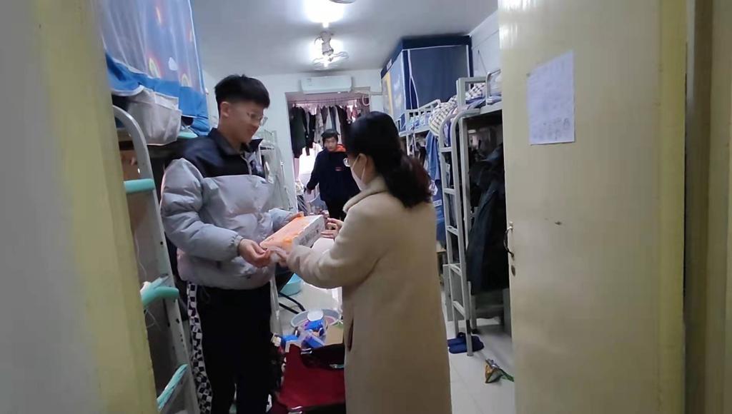 有人关怀的日子——九公寓临时党支部成员向学生分发深圳校友会捐赠物资