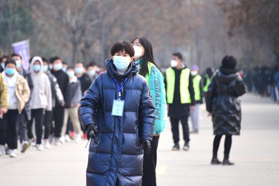26日半夜12:05,我接到隔离考场组长冯灏老师的电话,他强调:“这个考场特殊,都是隔离学生,要穿防护服,是否愿意接受任务?”我愉快的接受了,心理暗暗窃喜。早6:00起床,外面已白雪皑皑,6:50到达教一楼做各项准备。我们像医生一样穿上防护服,将学院和姓名写在背上,在中午13:00前,不吃、不喝、不上厕所。短暂的午饭时间过后,继续穿上防护服,监考,给试卷消毒,封装试卷,一直到20:30才走出教一楼。