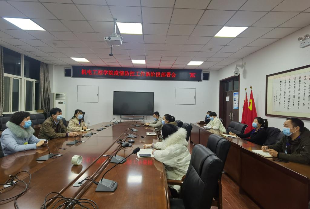近日,新型冠状病毒肺炎疫情持续好转,疫情防控工作进入新阶段,根据学校疫情防控领导小组统一部署,1月11日19:00,学院在工2-310召开情防控工作新阶段部署会,学校疫情防控督导组成员、学校纪委副书记赵琼,学校疫情防控督导组组长、机电学院党委书记路金龙出席会议,学院党委副书记姚敏茹以及全体辅导员参加会议。