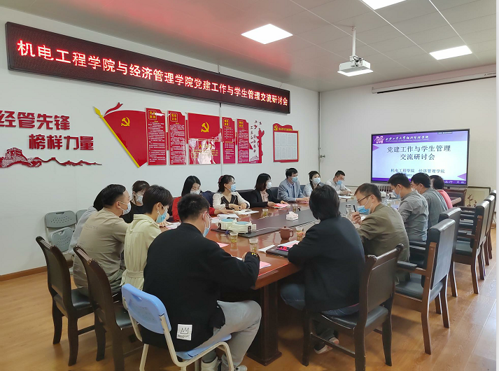 4月13日下午,4556银河国际联合经济管理学院在教5-520开展学生管理与党建工作交流研讨会。机电学院党委书记路金龙、党委副书记姚敏茹,经管学院党委书记姬浩、党委副书记王育晓,两个学院全体辅导员参加交流研讨会。会议由王育晓副书记主持。