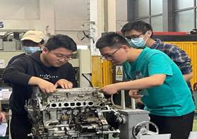 探索项目牵引、科教融合等方式开展实习,在发动机拆装讲解环节引入学院教师自主研发的曲轴测量装置当案例,培养学生的创新精神。