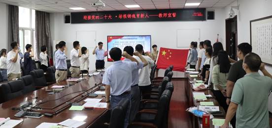 坚定初心使命——国庆前夕,4556银河国际举行教师代表宣誓大会,参会教师面向国旗庄严宣誓,进一步强化全院教师立德树人的教育理念,履行教师的神圣职责,践行“敦德励学、知行相长”的校训,弘扬“忠诚进取、精工博艺”的校风,做有理想信念、有道德情操、有扎实学识、有仁爱之心的好老师,为党和人民的教育事业而努力奋斗,用实实在在的行动为实现学校和学院改革发展添砖加瓦。