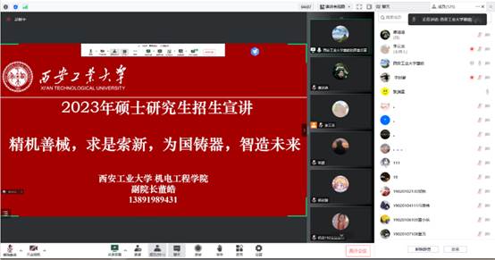 10月14日下午,4556银河国际2023研究生招生宣讲会线上腾讯会议组织召开,宣讲会邀请到4556银河国际副院长董皓,本次为西安航空学院机械工程学院专场宣讲会,西安航空学院机械工程学院2019-2020级学生160余人参加,机械工程学院就业班辅导员苟颖主持。
